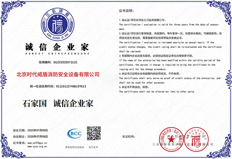 北京時(shí)代威盾消防安全設(shè)備有限公司 地址:北京市大興區(qū)濱河街27號(hào)16層1613A 電話:010-60248001 傳真:010-60259082 Mail:sdwd99@163.com 網(wǎng)址:m.yunshige.cn
