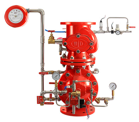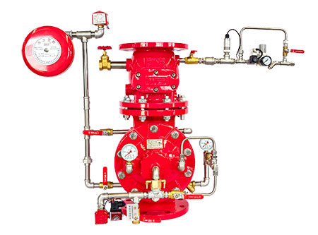 Pre-action system filling with certain pressure gas in the system side pipe network in ready condition mainly function is to supervise whether pipe network is air tightness or not. The controlling system is generally made up by magnetic valve, control cabinet and fire alarm system. When the fire control room receives fire signal sent by the detector, the magnetic valve will be open through the control cabinet, hence starts the pre-action system, fills the pipe network with pressure water and sends alerting signal, and then sprays water until the fire explode the sprayer. In case of wrongly alarm of the detector, the pre-action system open and fill the pipe network with pressure water, as long as there is no explosion of sprayer, the water will be saved and thus avoid loss of water logging. Emergency hand switch is equipped on the tube of control valve to start manual pre-action system in case failure of linkage. The monitoring pressure is 0.03-0.05MPa. When the system pressure is lower than 0.02Mpa, the pressure switch will send failure alarm signal to warn that the pipe network need to maintenance. The pre-action valve installation is to install a same diameter check valve on the assembly component of deluge alarm valve, and a certain amount of water shall be pre-grout to close the pipe network and keep pressure.